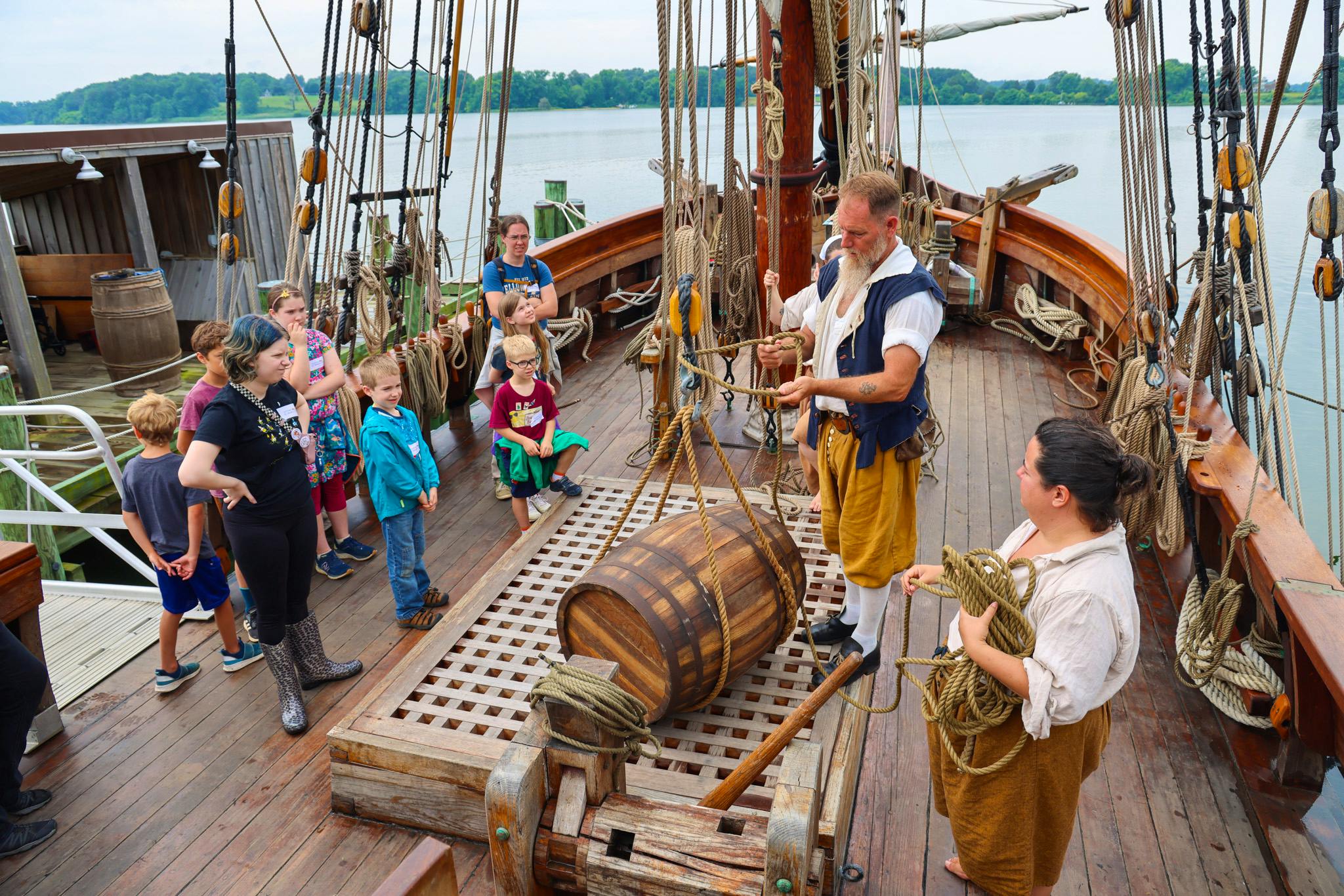 Join the waterfront staff for a morning full of fun, hands-on activities that demonstrate the science, mechanics, and mathematics involved in sailing ships and boats, big and small. Participants will experiment with concepts such as buoyance, draught, windage, and more! They may even find themselves setting and maneuvering one of Maryland Dove’s sails while she remains dockside (weather permitting).